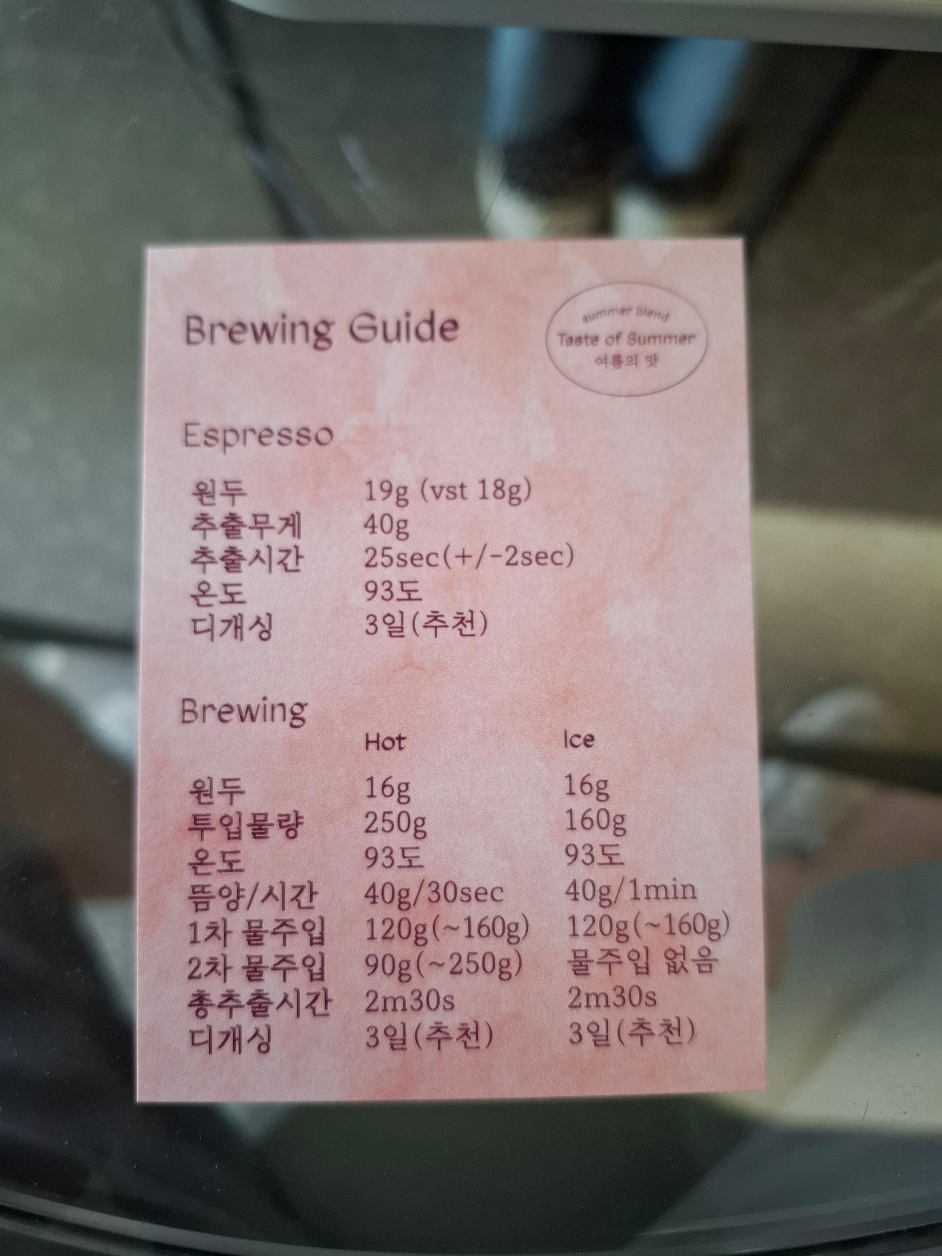 친절하게 브루잉 가이드까지 제공해 줍니다. 집에서도 이 원두를 가장 맛있게 즐길 수 있는 방법을 알려주는 세심한 배려가 돋보였습니다.