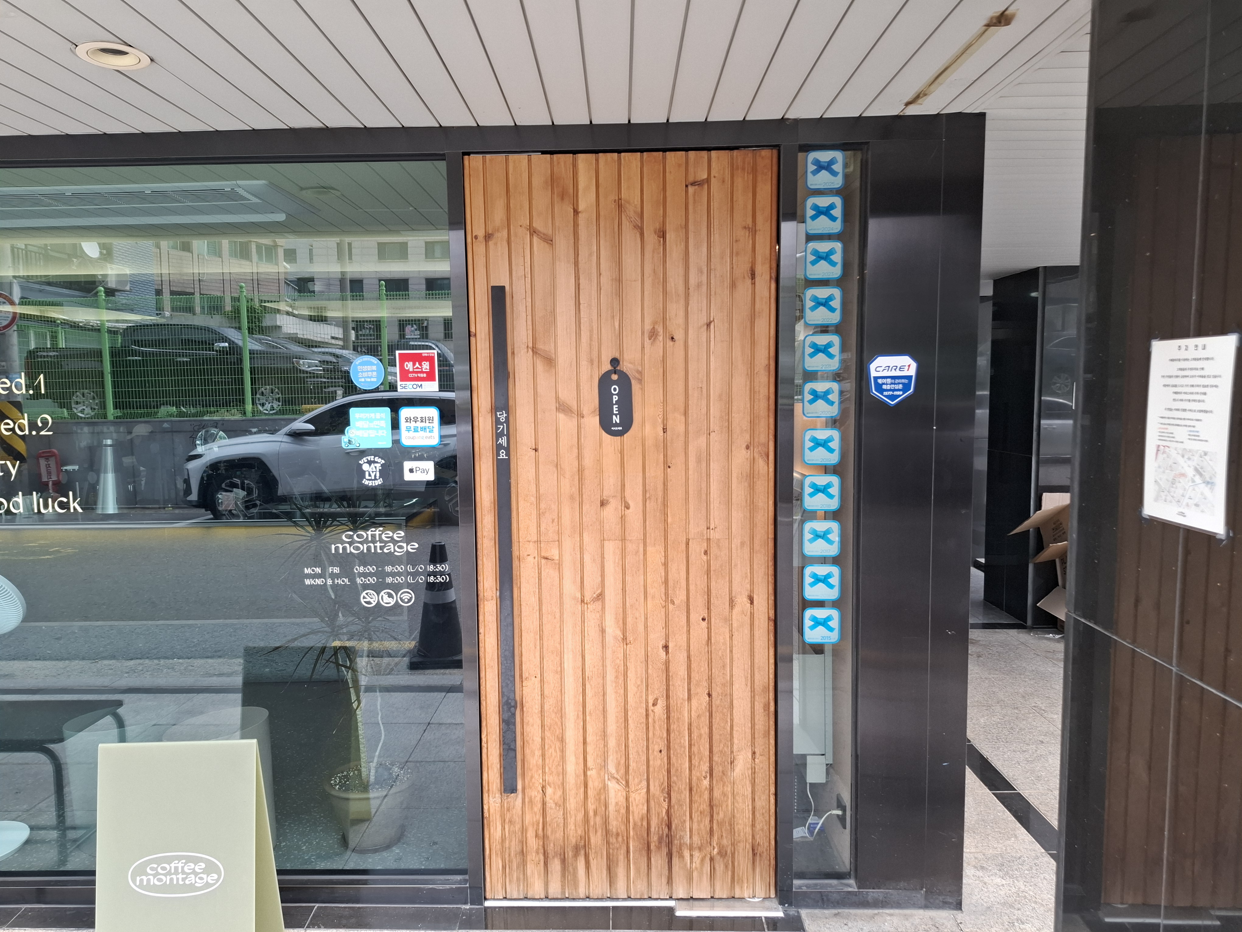 '커피몽타주'는 강동구 성내동의 한적한 골목에 위치해 있습니다. (주소: 서울 강동구 올림픽로48길 23-12) 화려하진 않지만 통유리 너머로 보이는 전문가적인 분위기가 발길을 이끌었습니다.