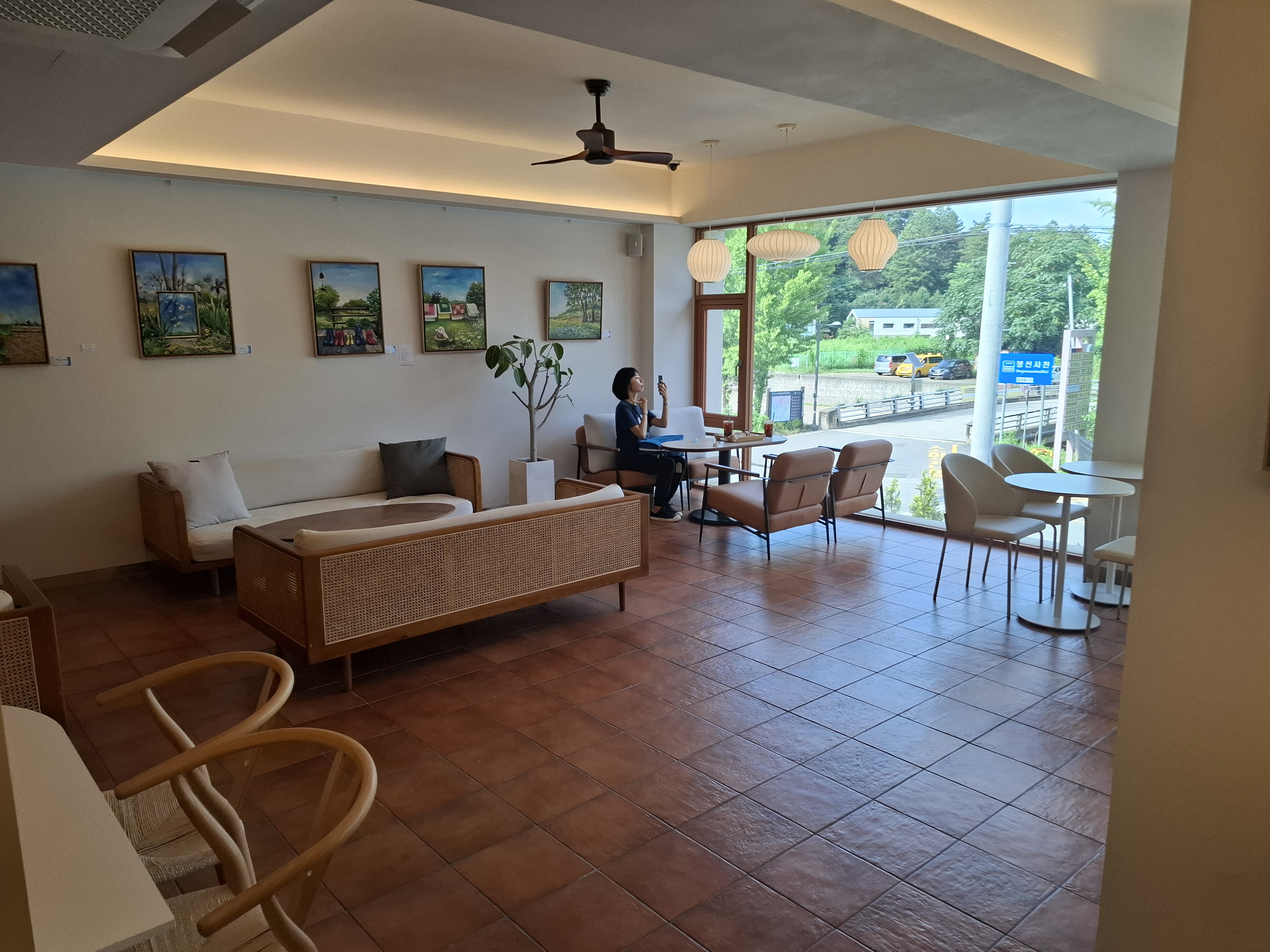 아침부터 열심히 돌아다닌 뒤에 에어컨 나오는 곳에 시원하고 평화롭게 앉아 있으니