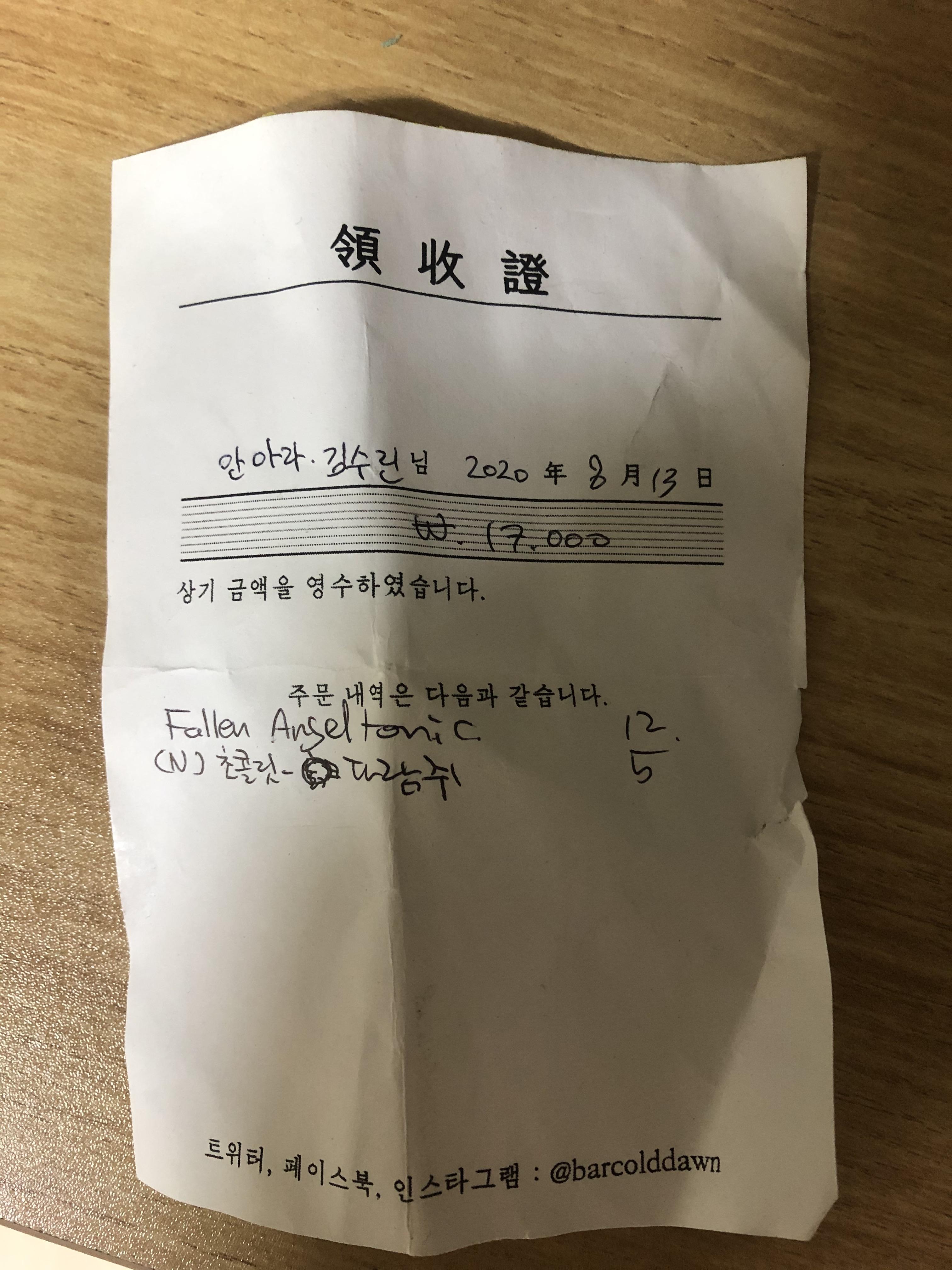 영수증에 적어서 주신다.