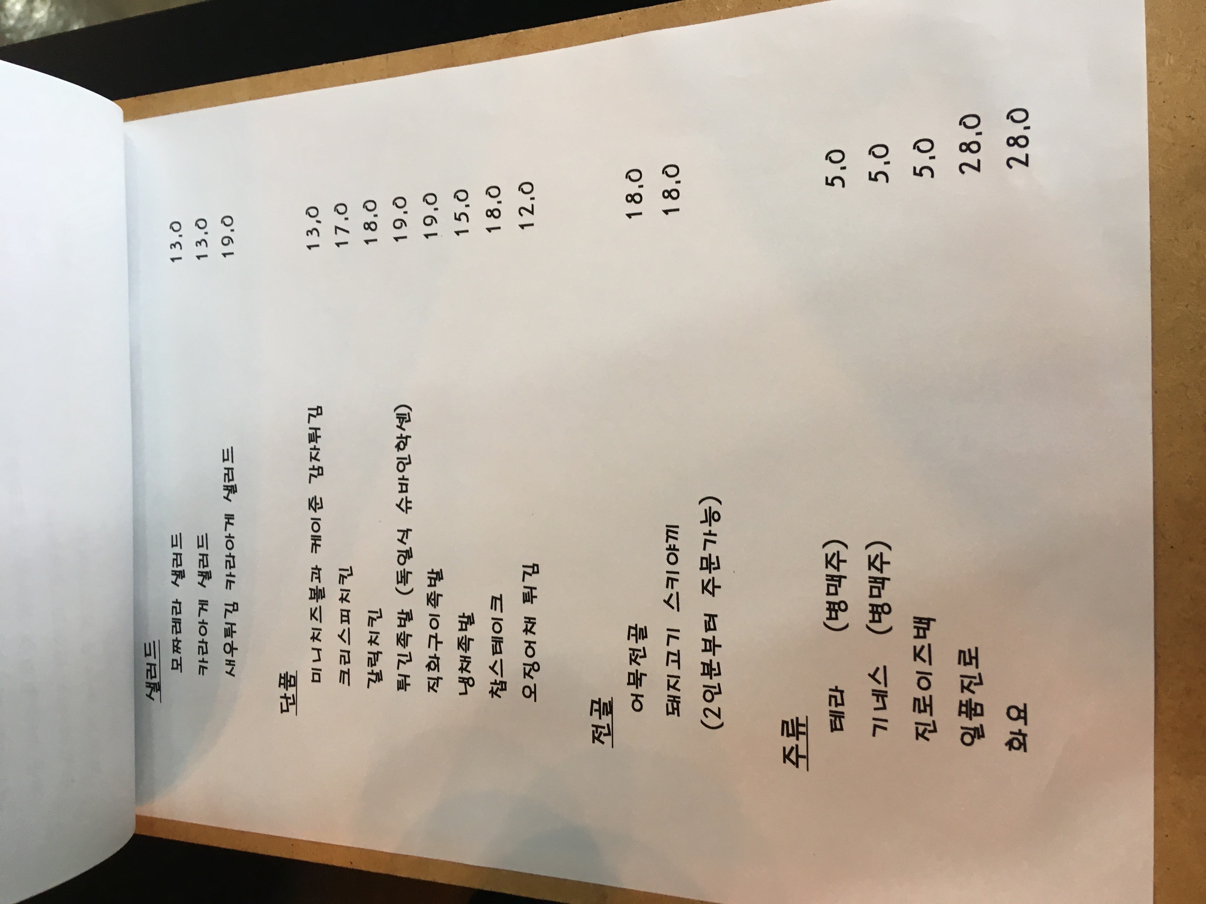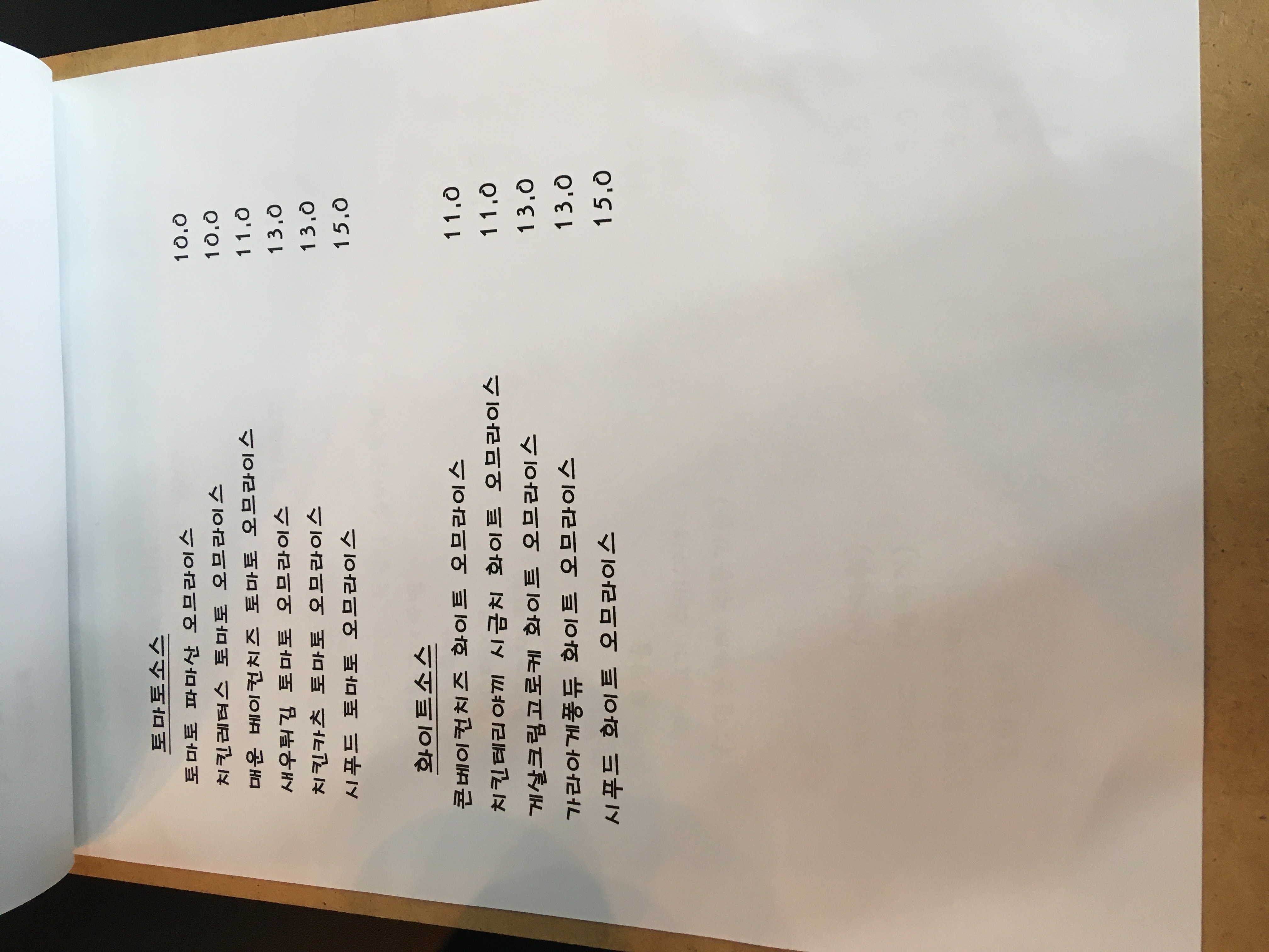 메뉴판은 이렇게 4장으로 구성되어 있는데,