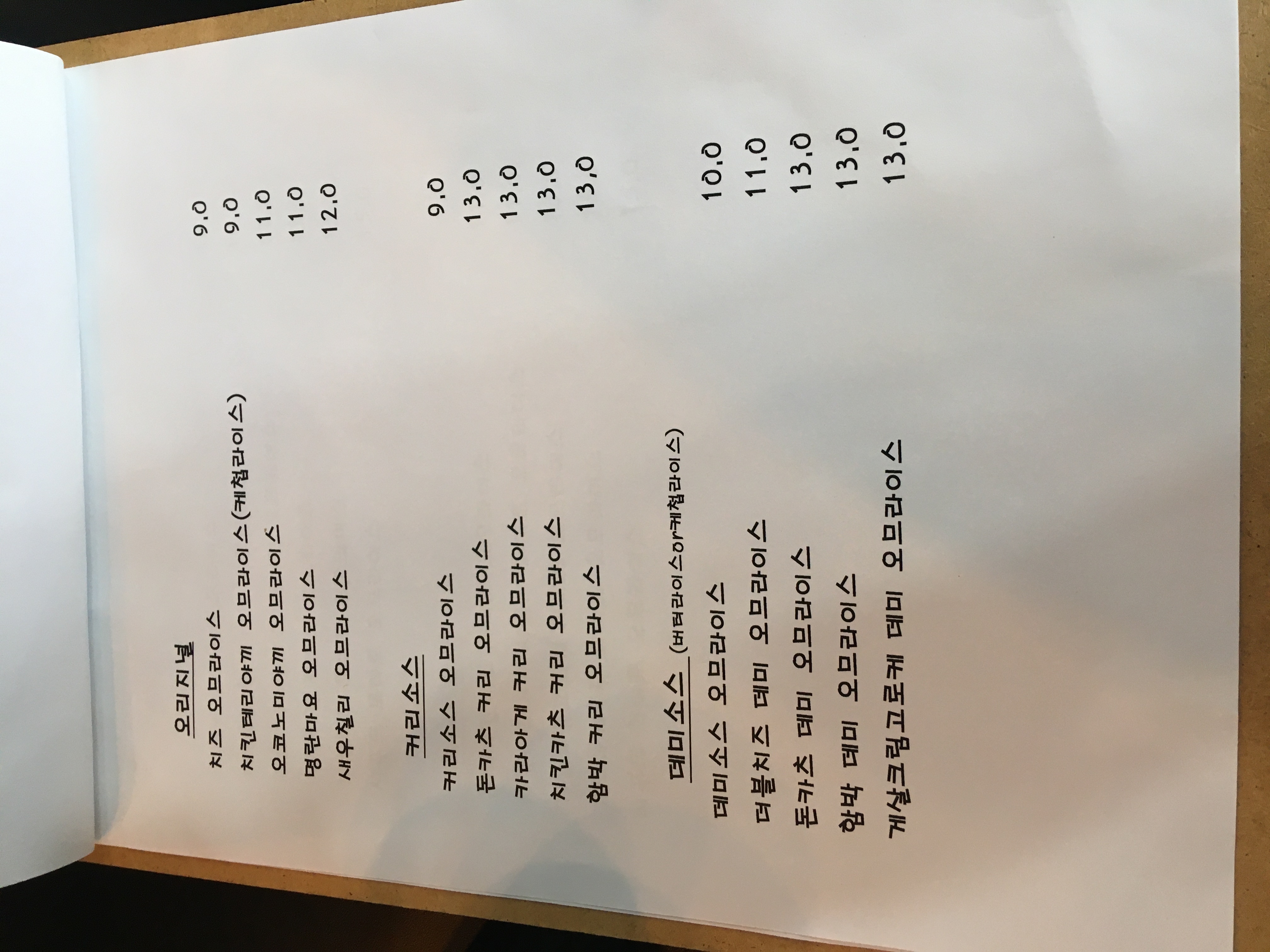 각 소스마다 5~6개씩의 오므라이스 메뉴가 있는데,