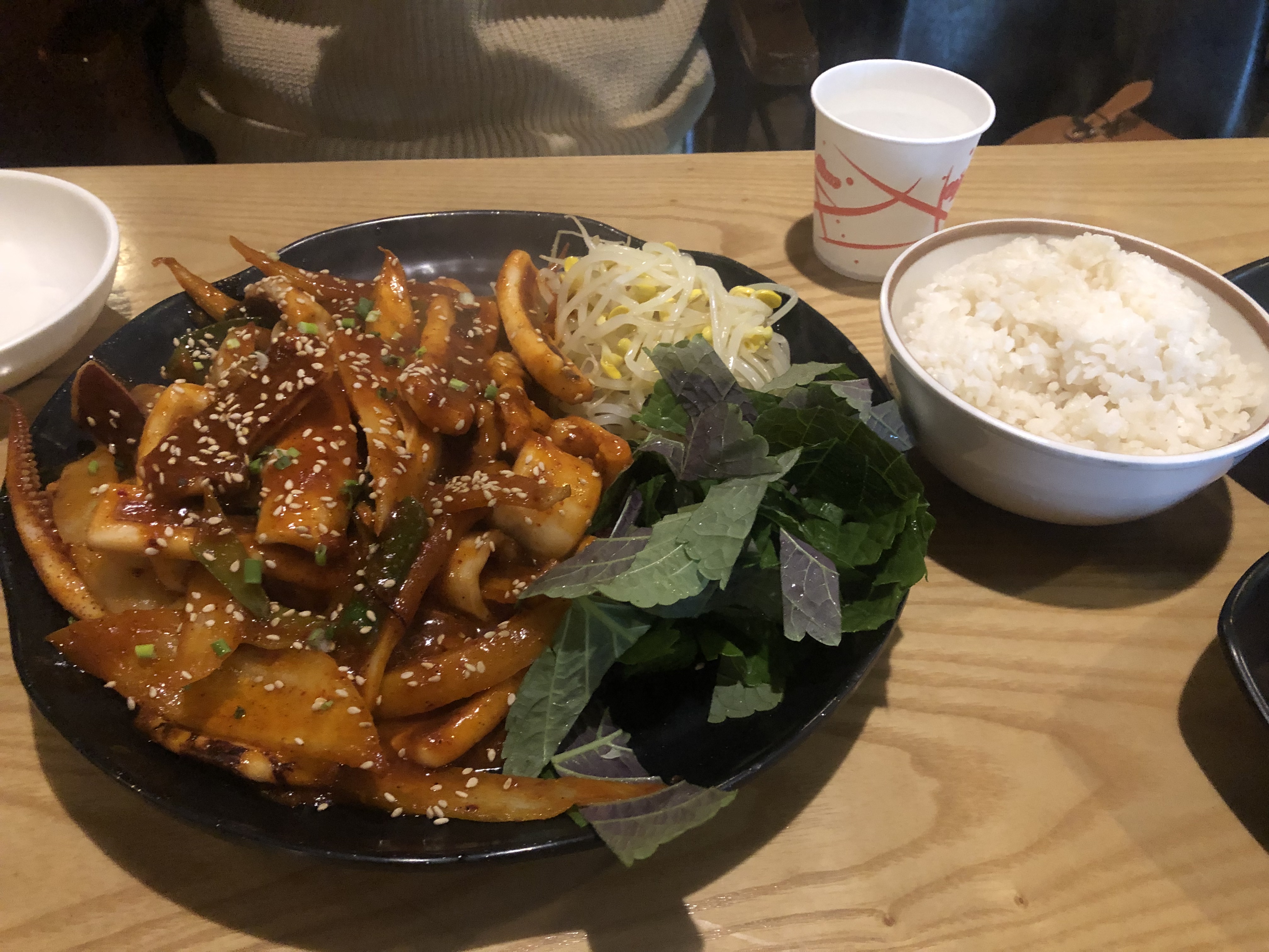 우리는 불오징어볶음하고 칼국수를 주문했다.